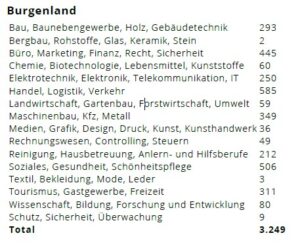 Im Burgenland wurden im vergangenen Monat 3.249 offene Stellen verzeichnet – davon waren lediglich 256 ausschließliche Teilzeitstellen. Die meisten Jobs gibt es in den Bereichen Handel, Soziales und Tourismus.